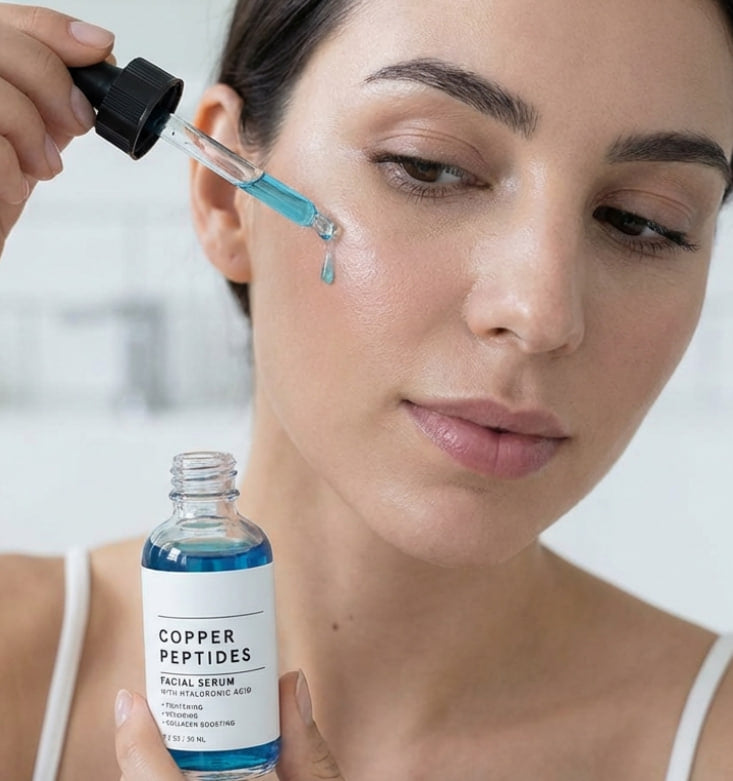 No. High-quality copper peptide formulations absorb cleanly into the skin and do not stain. A subtle blue tint in the serum is natural and reflects the presence of copper peptides.